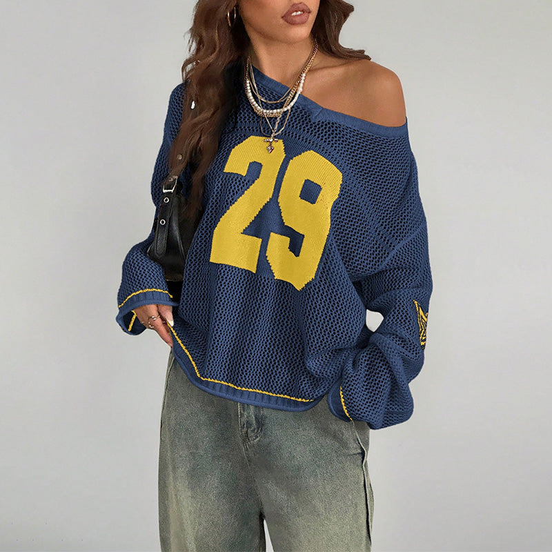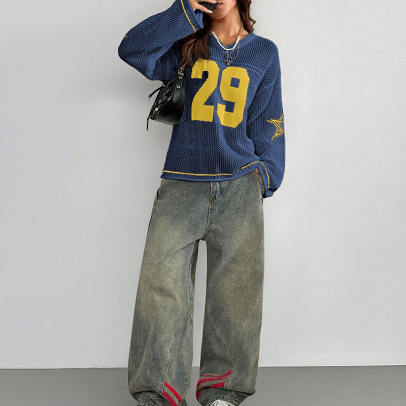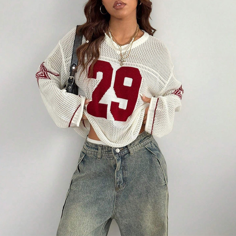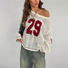 Suéter de fútbol hueco Y2k, ropa de calle para mujer, jersey de moda retro, tops de punto unisex, suéter de punto para pareja