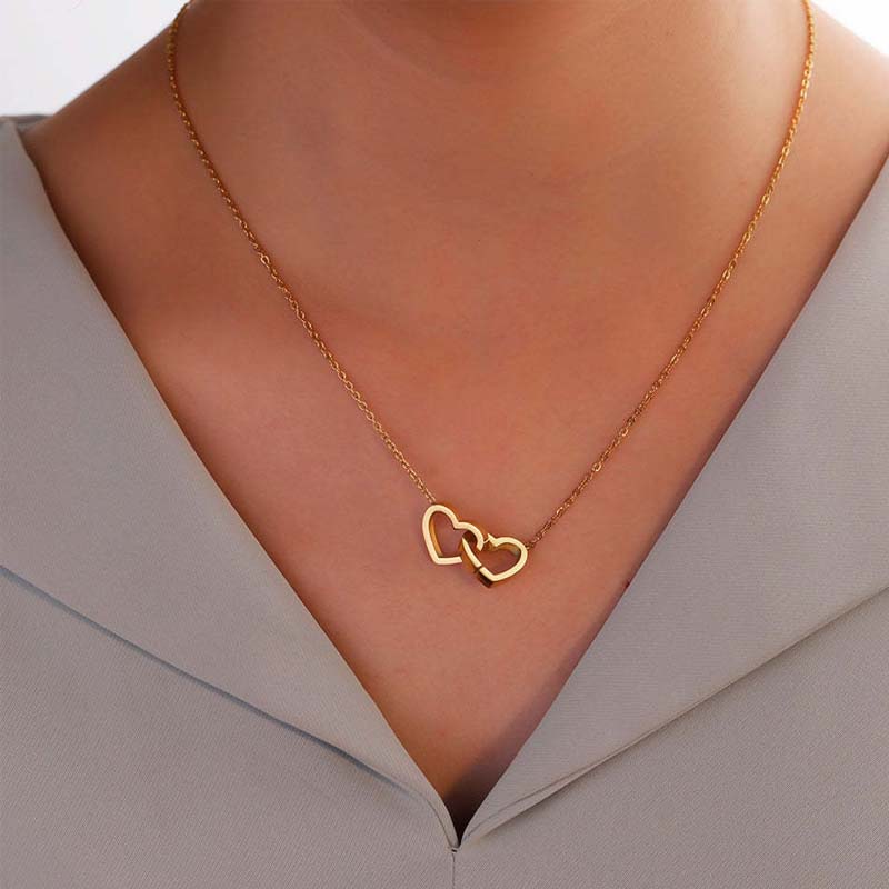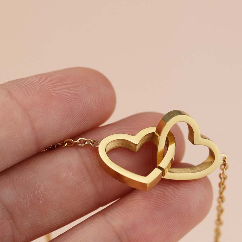 Collar/Pulsera Colgante de Corazones Entrelazados de Acero Inoxidable