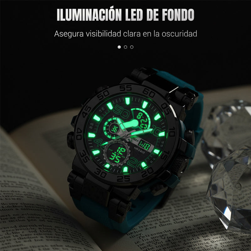 VISUALIZACIÓN HORARIA DOBLE ANALÓGICA Y DIGITAL : El reloj muestra la hora con manecillas tradicionales (analógicas) y una lectura digital para una lectura rápida y sencilla. Registra dos zonas horarias simultáneamente, ideal para viajeros o cualquier persona con múltiples agendas. Compatible con formatos de 12 y 24 horas, permite cambiar fácilmente según sus preferencias o estándares internacionales, ofreciendo una hora versátil y clara para el uso diario.