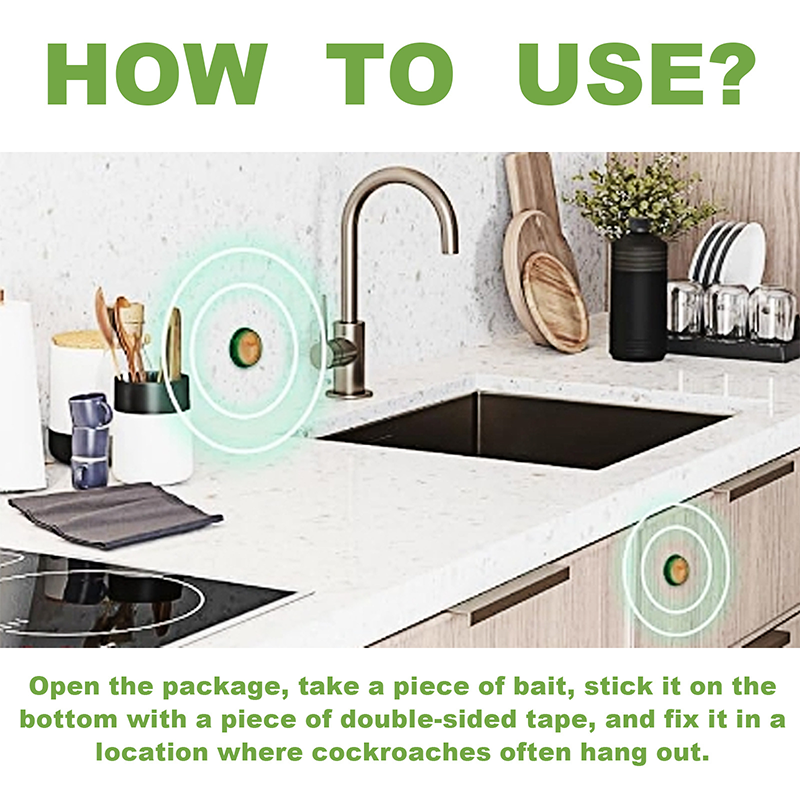 FÁCIL DE USAR : Simplemente despegue y pegue el cebo en las zonas donde las cucarachas están activas. Su diseño compacto permite ocultarlo fácilmente en esquinas, debajo de los gabinetes o detrás de los electrodomésticos, ahorrando tiempo y esfuerzo, y con resultados efectivos.