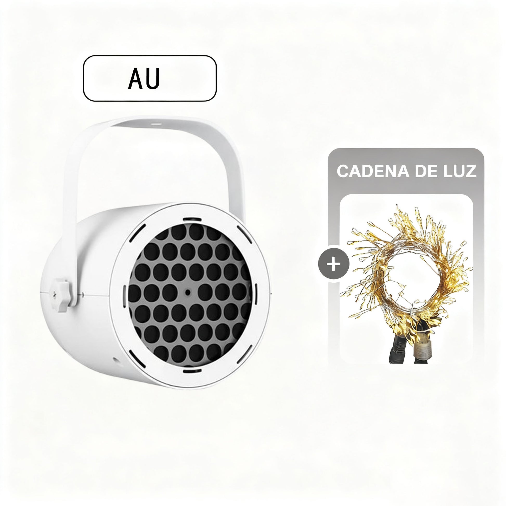 Incluye un asa portátil antideslizante que permite transportarla con una sola mano, por lo que trasladarla del salón al balcón o del interior al exterior para acampar es muy sencillo. Equipado con un soporte de ángulo ajustable, se puede colocar en posición horizontal sobre mesas o el suelo, inclinarlo hacia paredes o techos, o incluso fijarlo en pequeños postes de soporte. Ya sea para montajes temporales en fiestas o para uso en exteriores, podrá encontrar rápidamente el ángulo de proyección adecuado.