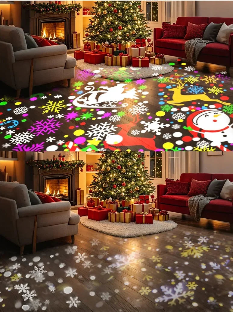 Proyector de Copos de Nieve 3D ❄️✨ Iluminación LED Giratoria para Navidad