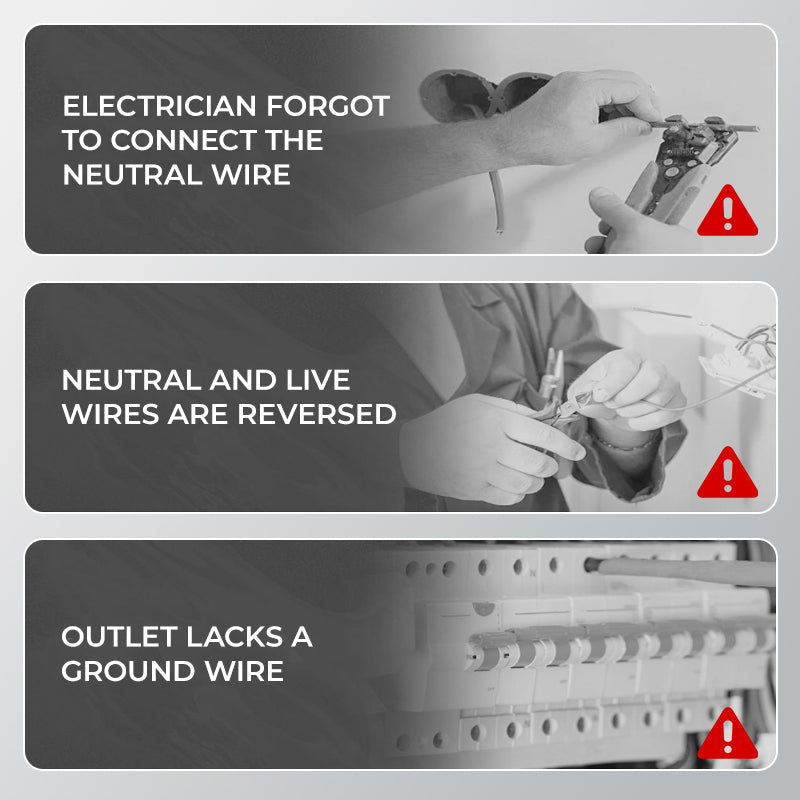 DETECCIÓN INTEGRAL DE CABLEADO, IDENTIFICA 6 FALLOS: Este probador detecta 6 posibles fallos de cableado, incluyendo polaridad invertida, tierra abierta y neutro ausente. Garantiza que tus tomas de corriente cumplan con los estándares de seguridad y funcionen correctamente.