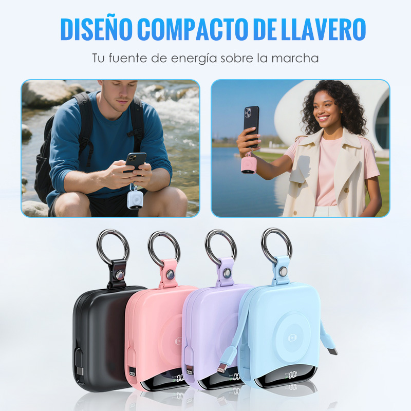 DISEÑO COMPACTO Y PORTÁTIL: su diseño liviano y fácil de llevar con llavero le permite sujetarlo fácilmente a su bolso o llevarlo en su bolsillo, lo que proporciona una carga potente que va a donde quiera que vaya sin agregar volumen adicional.