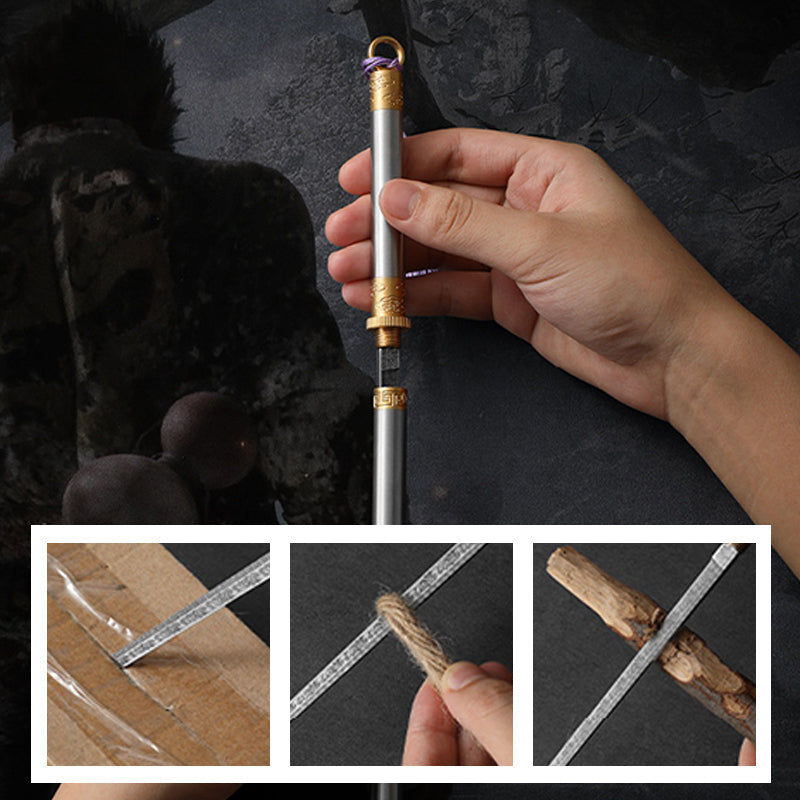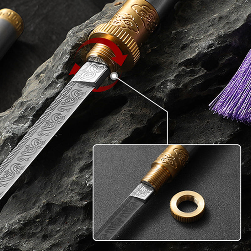 DISEÑO ELEGANTE - Con su borla de estilo chino y el intrincado diseño de su mango, este cuchillo no sólo cumple una función práctica, sino que también añade un toque de elegancia a sus utensilios de cocina o a su equipo para actividades al aire libre.