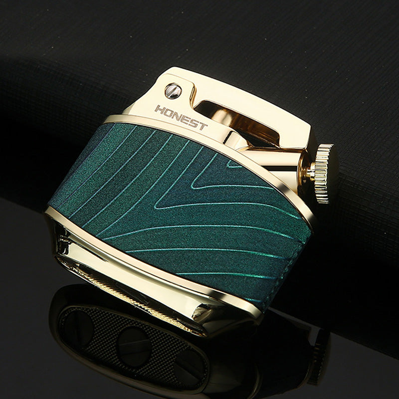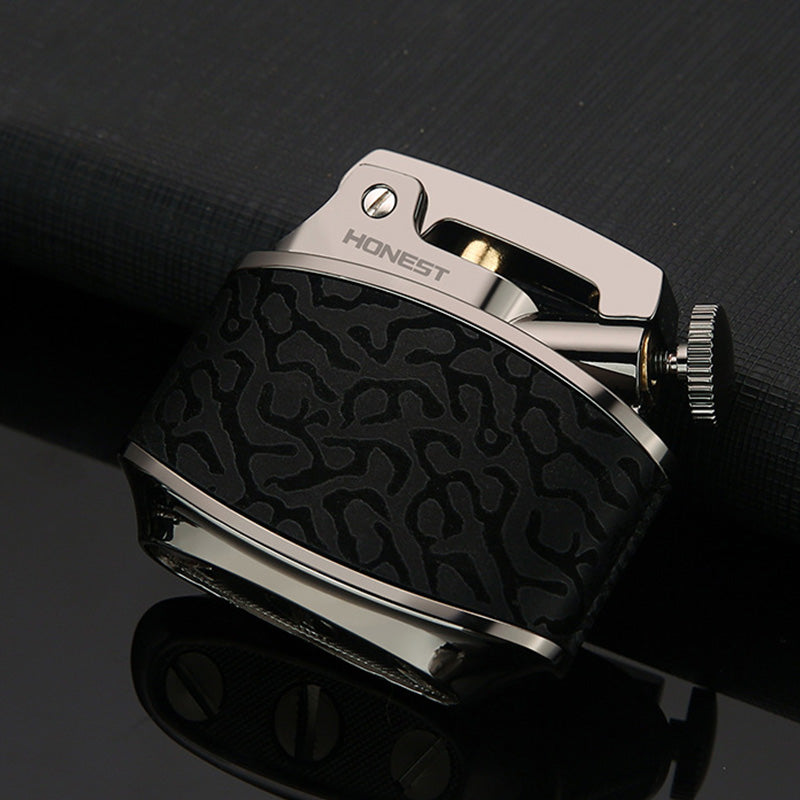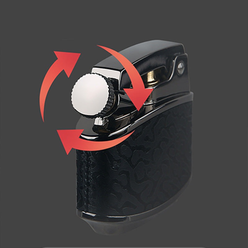 DISEÑO ÚNICO Y ELEGANTE: Fabricado con aleación de zinc duradera y cuero PU de alta calidad, la combinación de materiales le otorga a este encendedor un aspecto sofisticado y lujoso, mientras garantiza comodidad y durabilidad.
