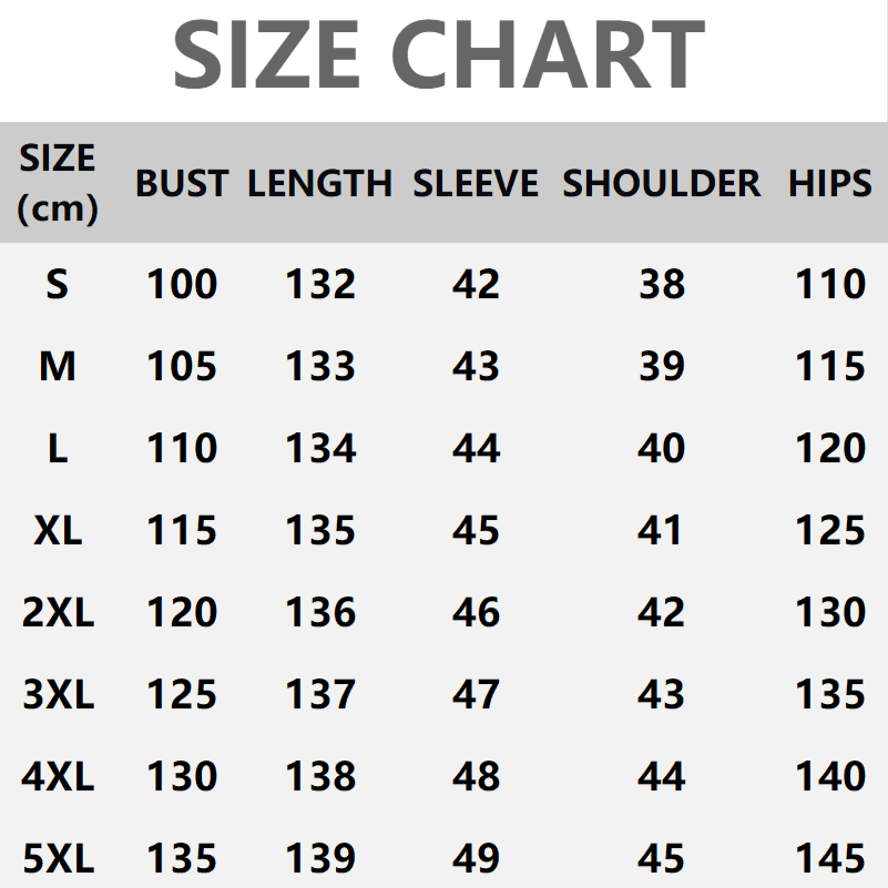 Tallas: S, M, L, XL, 2XL, 3XL, 4XL, 5XL